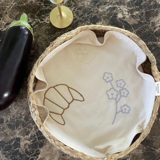 Lyserød broderet kurveserviet