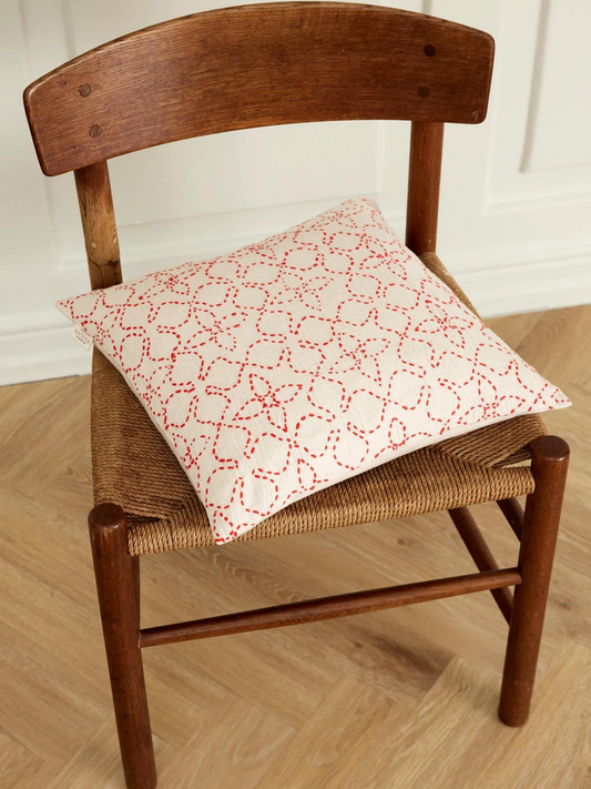 Jou broderet pude i creme/rød