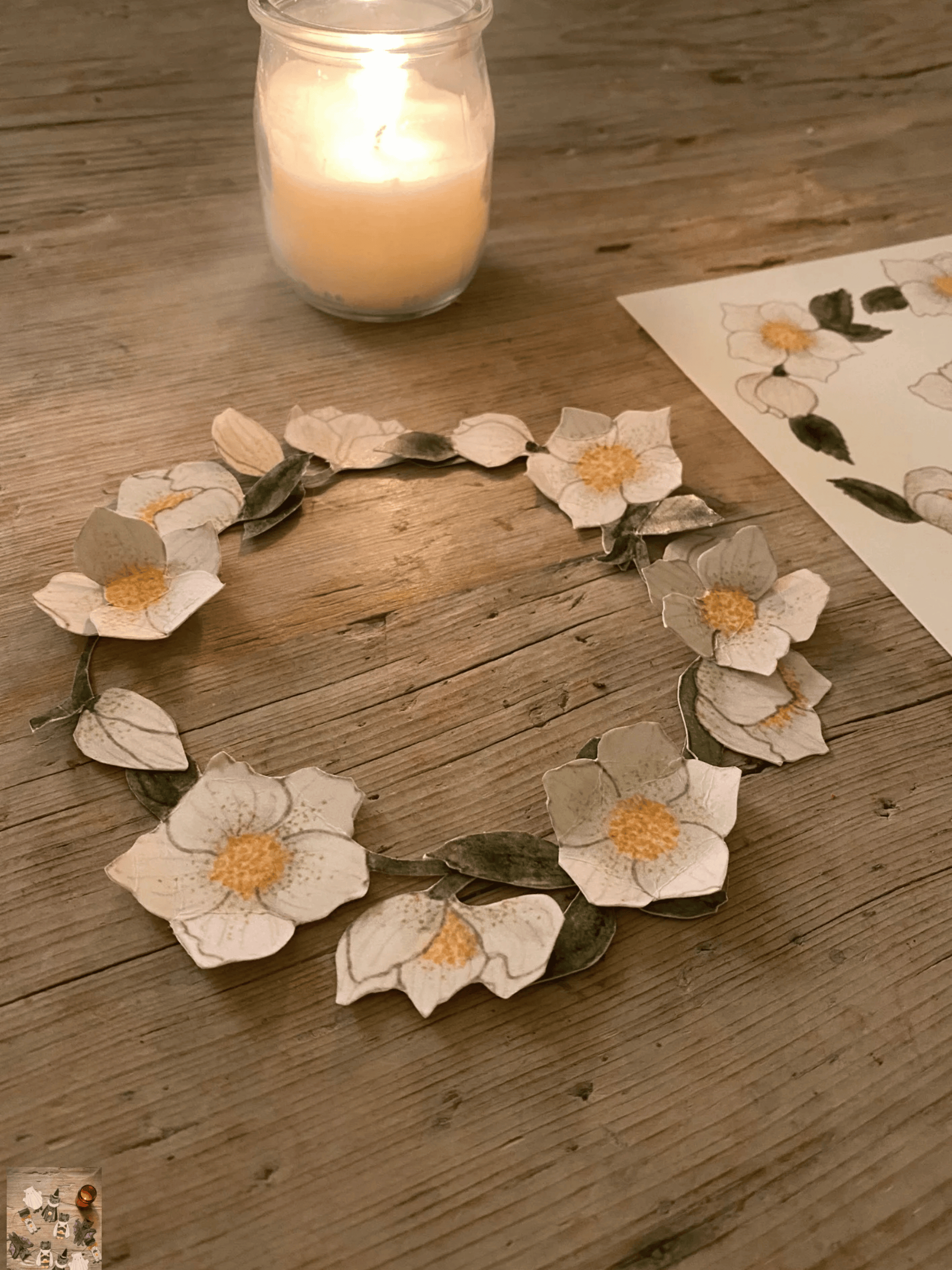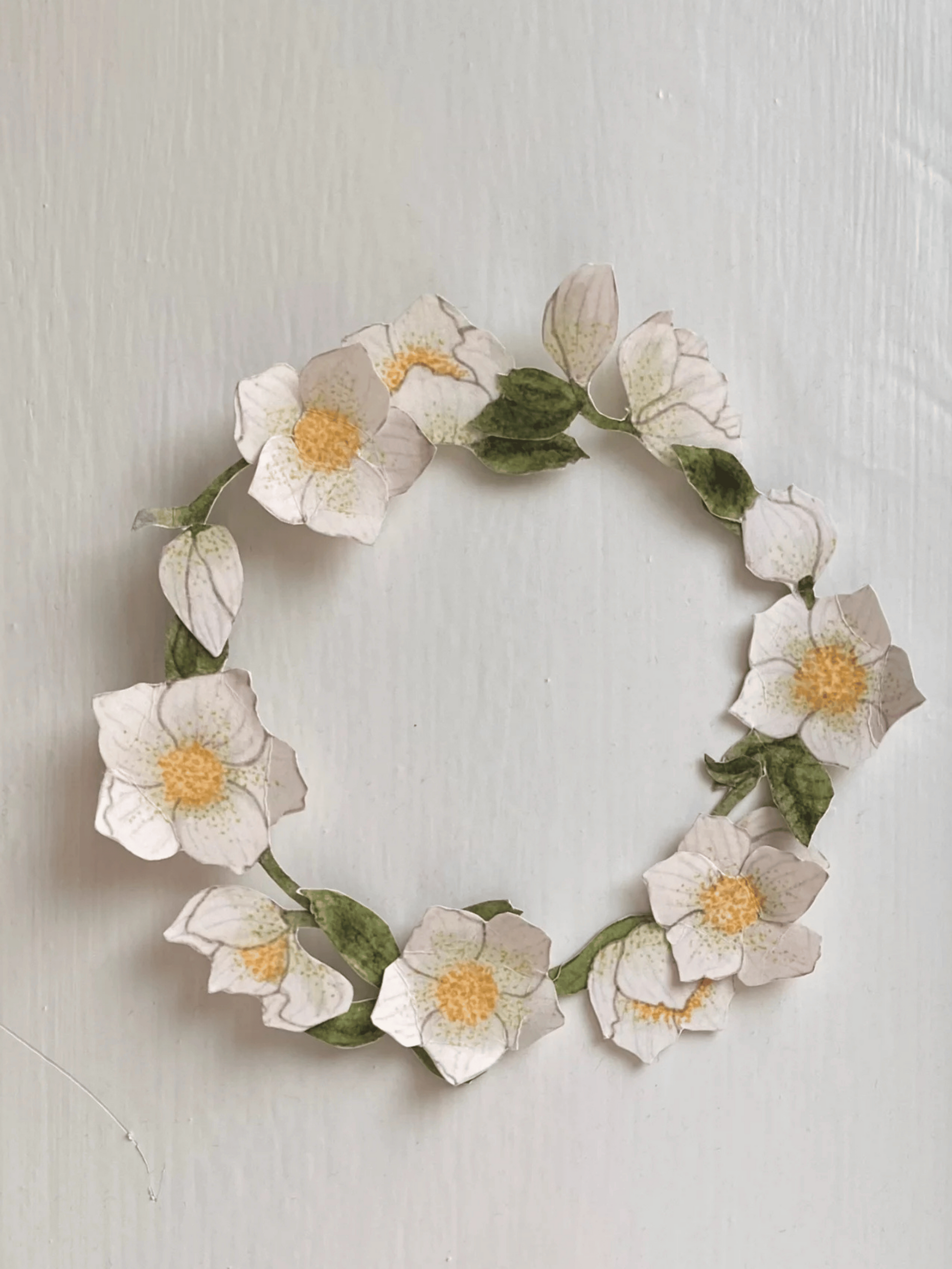 Lad dig inspirere af vores version eller opfind din egen. Buk evt. blomsterbladene lidt op, så de fylder mere på kransen,